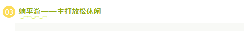 广之旅相关负责人表示,从市场反馈与消费需求变化来看,躺平游的本质是旅游消费从“高效打卡”回归“松弛体验”的一种体现,这种趋势既符合年轻群体的需求,也与旅游市场的产品供给升级相呼应。“从消费端来看,躺平游的流行一方面提供了一种‘低强度、高治愈’的放松途径,满足了年轻人释放压力的现实需求。另一方面,也与消费观念的升级有关。相较于‘特种兵式’的疲惫打卡,他们也愿意为‘睡到自然醒’‘深度体验在地文化’等松弛感买单,追求旅游过程中的舒适感与个性化满足。”